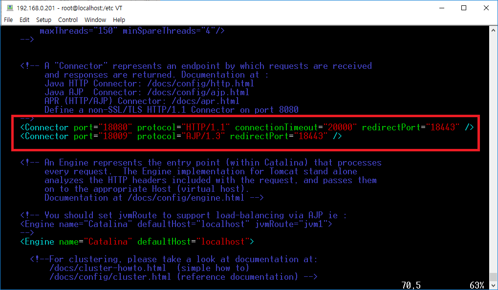 先、「tomcat」にはhttpポートを設定してブラウザと通信するHTTPプロトコル領域があります。または、「ajp」プロトコルという「apache」と通信するポートがあります。