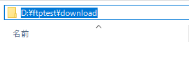 私の場合はFTPサーバを「d:\ftptest\ftp」に設定してアップロードファイルを「d:\ftptest\upload」フォルダからアップロードテストをします。そして、ダウンロードフォルダは「d:\ftptest\download」に設定してダウンロードテストをします。